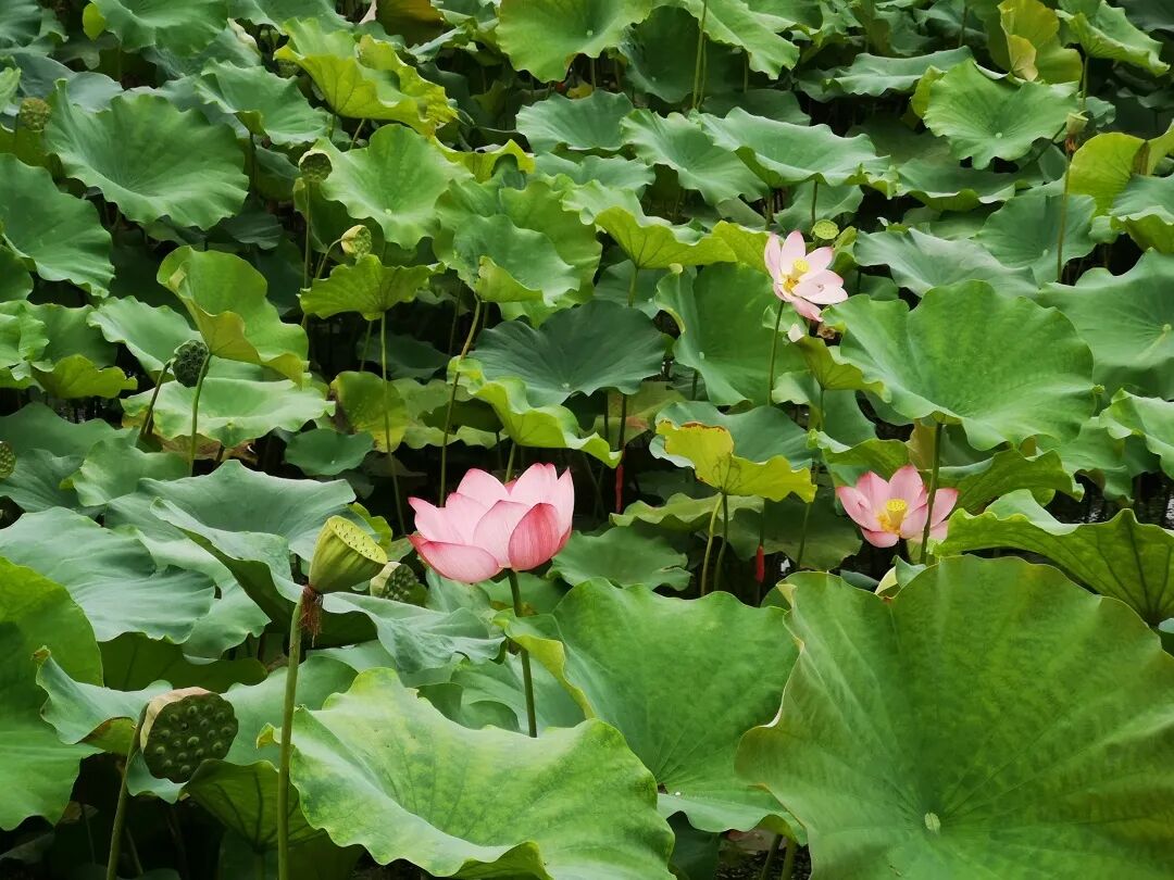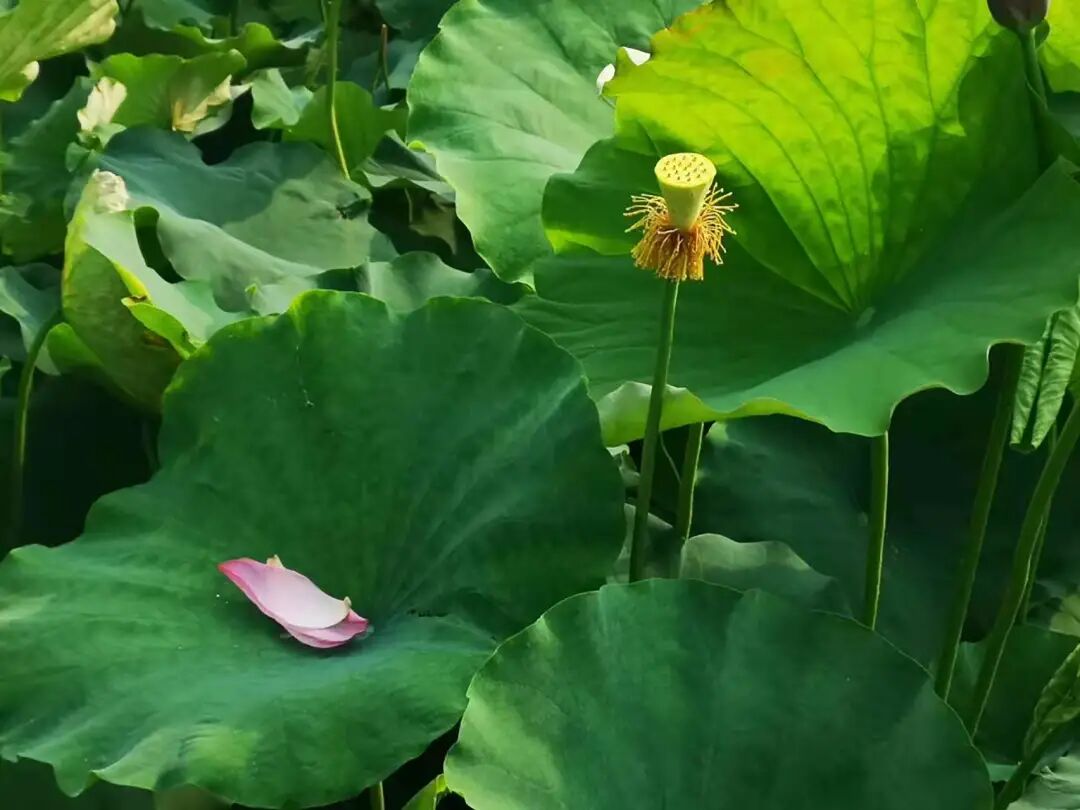 2019年9月开学时,在湿地公园往图书馆的方向的路边发现了这一片荷塘,荷花仍在开放,还没有广为人知,我确信以后可以足不出校,就能欣赏到最美的荷花了。