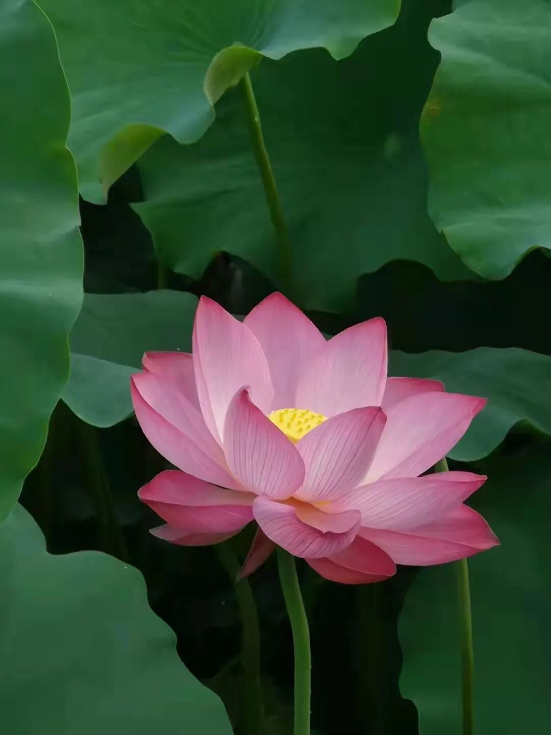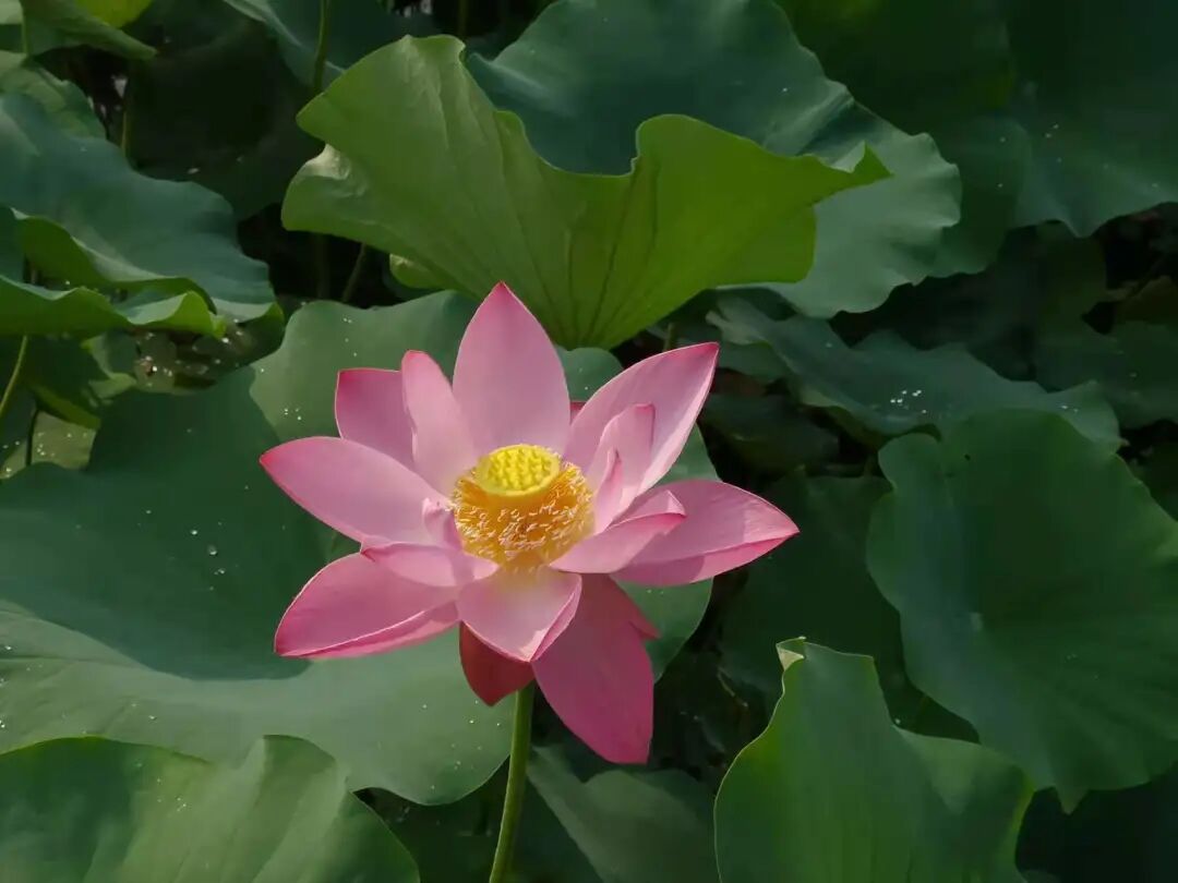 荷花离岸边较远,有一处石头砌成的堤坝,以及荷塘上凌空假设的木栈桥都是赏荷的佳地。总能寻找到最佳的拍摄角度,拍摄时心里默念一定要抓紧手机,别掉进池塘里。
