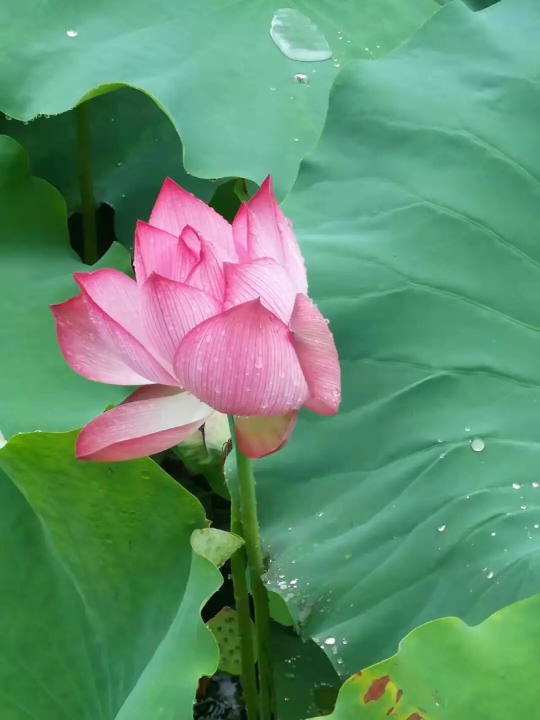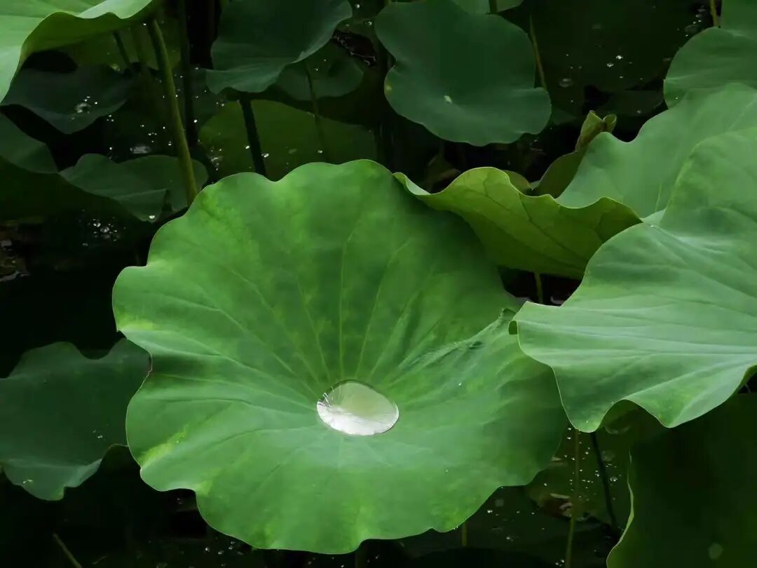 早晨,荷花会顶着露珠开放,荷叶的芯里面也会有一颗饱满的、富含表面张力的水珠,在风的吹拂下滚动,有的会散落,有的坚强地等着太阳出来后把它蒸发掉。