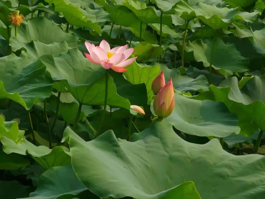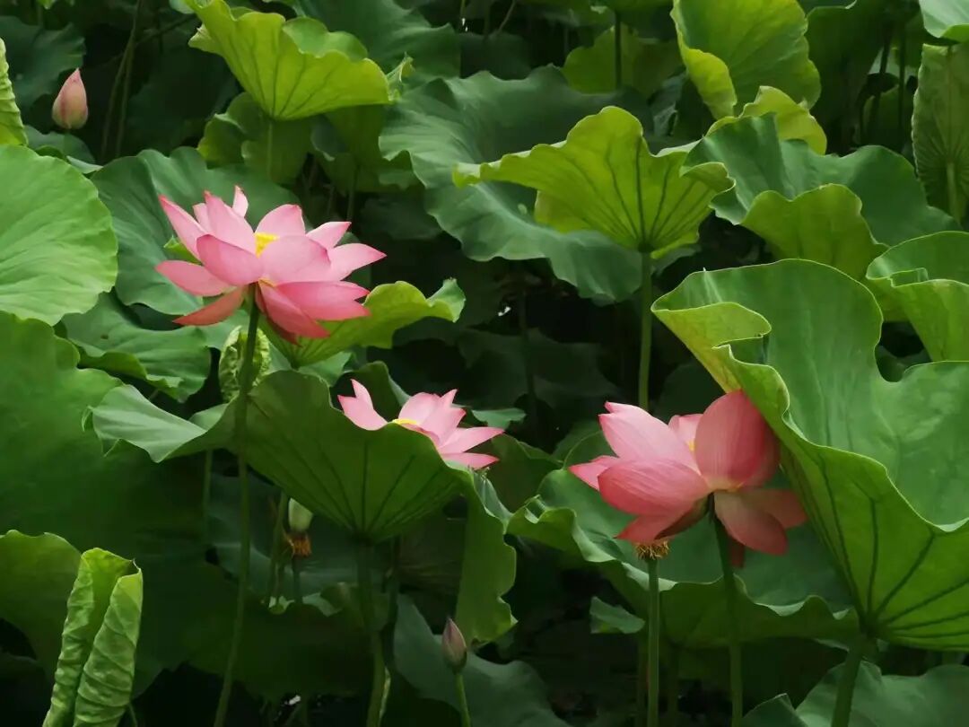 每一朵花的美都各不相同,清冷高洁。风吹过来,荷叶彼此碰撞,发出沙沙的响声,荷花也会随之起舞,袅袅娜娜。
