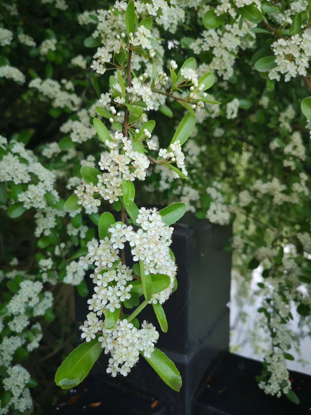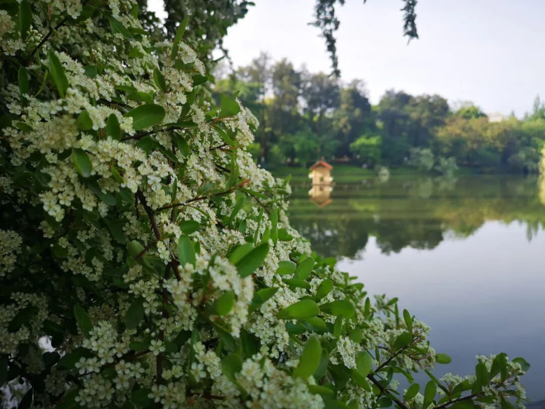 靠近图书馆这边,是一丛丛的火棘树,以前只注意过冬天密密麻麻的红果子,原来春天,火棘树的花也是如此可爱,仔细观察,花朵是呈右旋螺纹分布的,非常奇特。