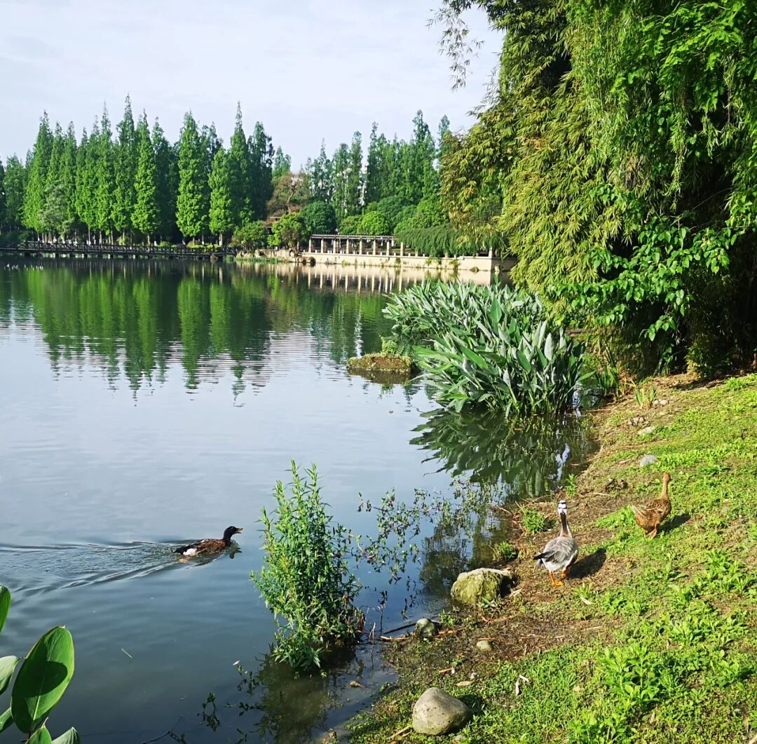西湖边更是春意满满。柳树优雅地伸展着枝条,柔软的柳枝随风摇曳,湖边的白色马蹄莲盛开着。白天鹅和黑天鹅们在惬意地欣赏着湖边的春色,斑头雁和它的两个伙伴在踱步,有时候感觉它们在吵架,大声叫着、互相追赶。