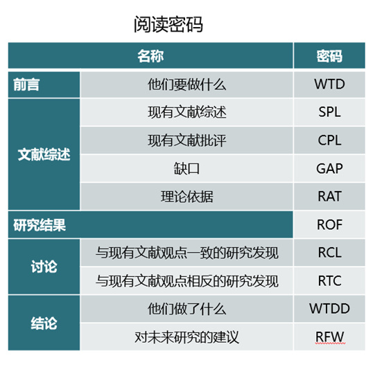 学者写学术论文是“改进轮子而不是创造轮子”的过程,我们仅需要在现有的学术理论上前进一点就够了。因此作者发明了阅读密码表,能够清晰地识别论文的逻辑结构,也能够帮助学者在写作中发现“轮子”、批判性观察“轮子”并改进 “轮子”。
