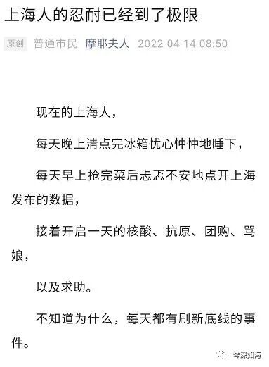 这是一篇上海疫情苦难的雄文,上海的苦痛和挣扎,上海的魔幻和悲鸣,在一篇千万人关注的文字中凸显得淋漓尽致。