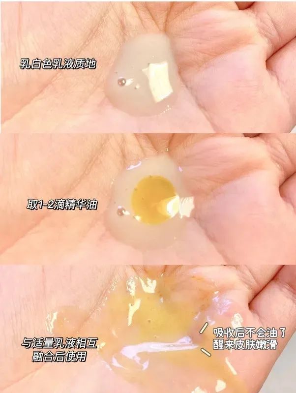 ☝将精华油滴进乳液中使用,这样一来确实肤感好多了,而且效果比之前单独使用要好得多。
