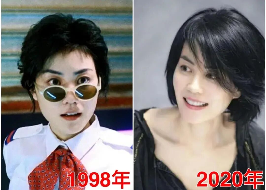 翻开她20年前的照片对比: