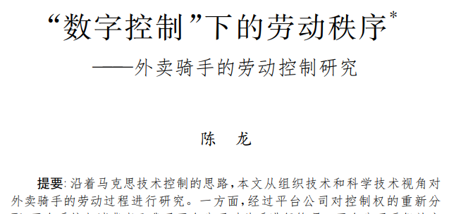 去年,北大博士后陈龙在体验了5个半月的配送工作,然后将工作经历写成了一篇题为《“数字控制”下的劳动秩序*———外卖骑手的劳动控制研究》的论文,其中就披露了平台控制骑手的过程与手段。