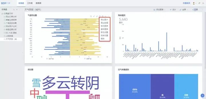 仪表盘设计:做好的图表都在仪表盘里,可以设计仪表盘,让做出来的图表更美观。
