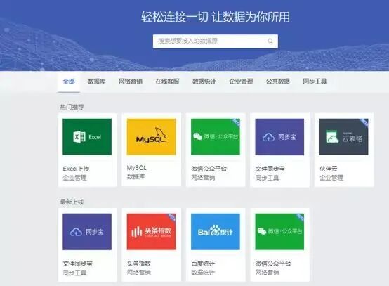 数据接入就是上传数据,可以上传本地Excel或者CSV数据,也可以接入主流数据库来接入数据。
