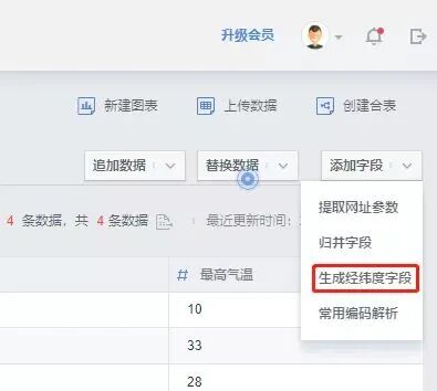 生成经纬度地图需要经纬度字段,在工作表中的添加字段中可以自动根据地址生成经纬度字段(会员才能用哟~)。