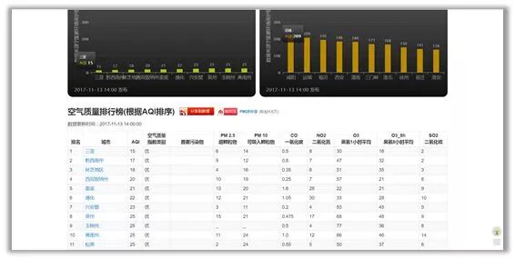 (3)打开要爬取的目标网站,一个全国实时空气质量网站pm25.in/rank,目标网站上的表格结构如下图所示: