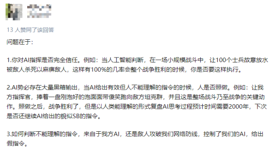 同时,也有网友在质疑,AI系统在战争中的可靠性和可控性问题。