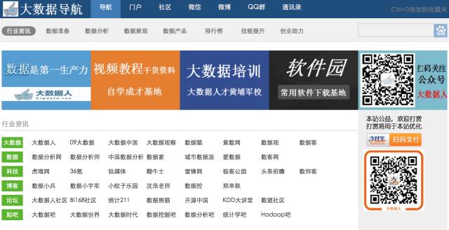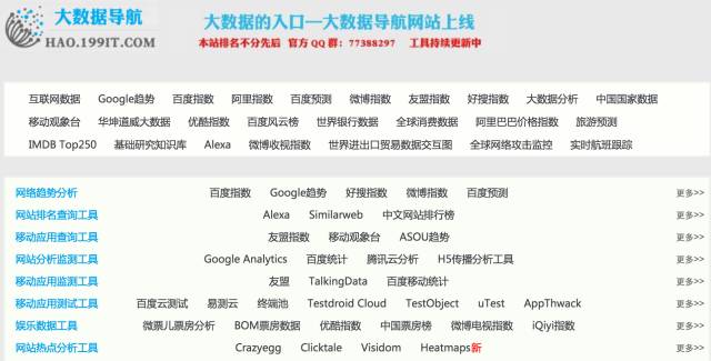 收集数据是一种能力,学习收集数据也是一种能力,数据的来源是没有穷尽的,转换一种思维,你就可以获得不一样的数据,下面推荐几个可以用到的大数据导航,从这里面你可能会发现一些你自己想要的东西。每个人喜欢的收集数据的渠道不尽相同,只有尽量多地去见识和实践才会发现更多的适合自己的数据获取方式。